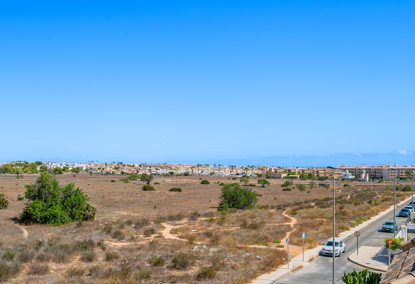 This spacious and well-kept penthouse apartment is located on the first floor with its own private entrance in the sought-after residential complex Brisas y Golf III. It offers plenty of space and excellent outdoor areas including a large private roof terrace with open views of the surrounding area. The layout is well thought out, with the living areas grouped together and the sleeping area tucked away at one end of the home. The three bedrooms are practically arranged off a hallway, and the master bedroom has its own en-suite bathroom. The kitchen is open to the living and dining room, creating a bright and functional space with room for both a sofa area and dining table. From the kitchen, you have access to a covered utility patio, ideal for storage and housing the washing machine. Outside the front door, there's a charming west-facing terrace with space for outdoor dining, enjoyable all year round. A staircase from the terrace leads up to the large private roof terrace perfect for barbecues, lounge furniture and relaxing under the open sky. Built in 2006, the apartment is in good condition and features classic Spanish charm. It is sold furnished and comes with air conditioning in both the living room and the master bedroom. A private, numbered parking space is included and located inside the gated community. There is also convenient street parking directly outside the property. As a resident, you also have access to two communal pools surrounded by greenery and palm trees. Both pool areas were renovated in spring 2025. Outdoor exercise equipment is also available in the complex perfect for staying active without needing to go to a gym. The location in El Barranco, near Los Dolses, makes this property particularly attractive for those looking to be close to both everyday conveniences and holiday experiences. Restaurants and cafés are within walking distance, and the local Dialprix supermarket is just one kilometre away. A short drive takes you to the beautiful beaches of Orihuela Costa, the popular Zenia Boulevard shopping centre, several top-rated golf courses including Villamartin and Campoamor, as well as nearby padel and mini golf facilities. In short, this is a fully equipped and move-in-ready apartment with a great location, private parking, and generous outdoor living ideal for holidays or year-round living.