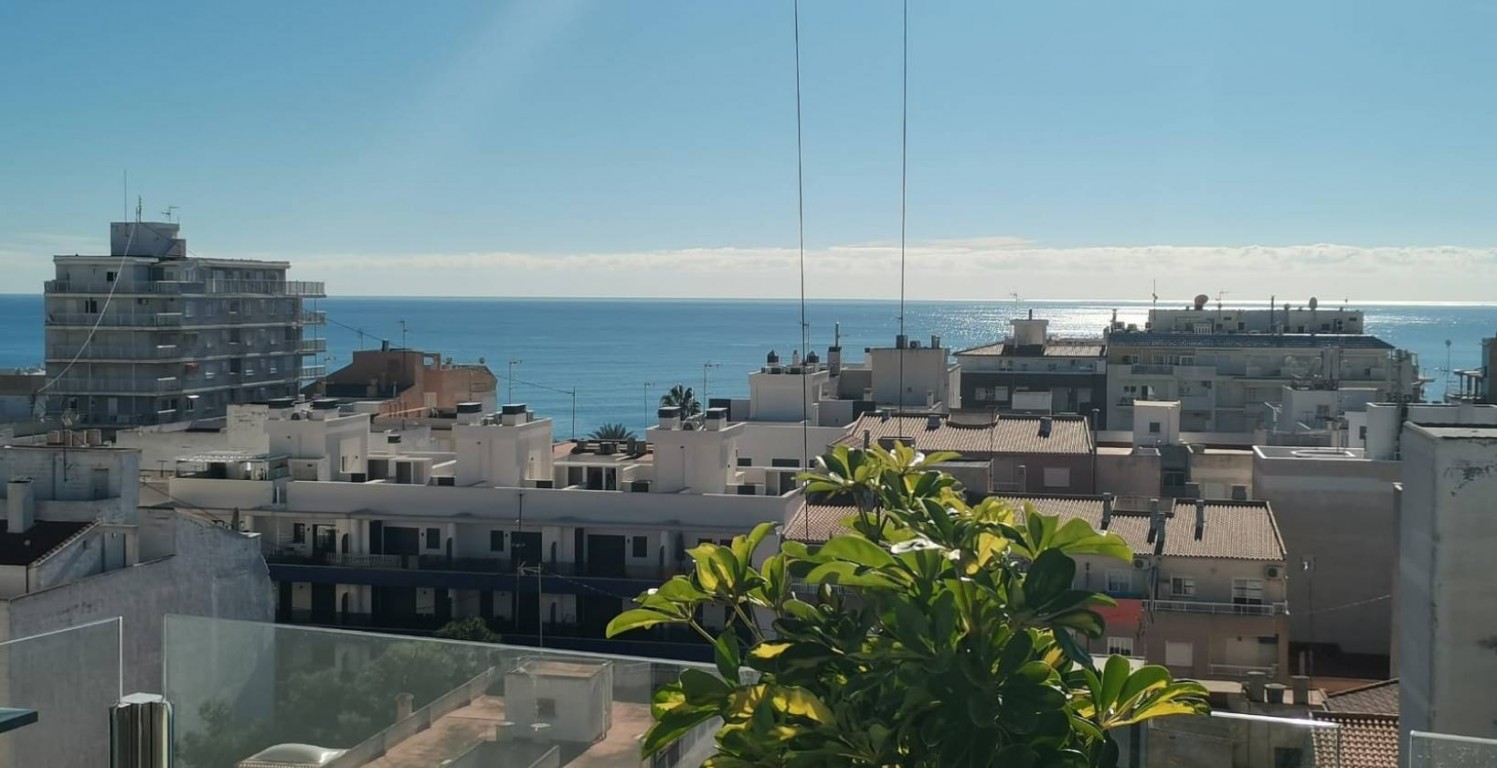 Apartamento en primera planta, de 2 dormitorios y 2 baños, con terraza de 6 m², totalmente amueblado, a solo 300 metros de la playa central. Incluye electrodomésticos, aire acondicionado, iluminación y cortinas.
