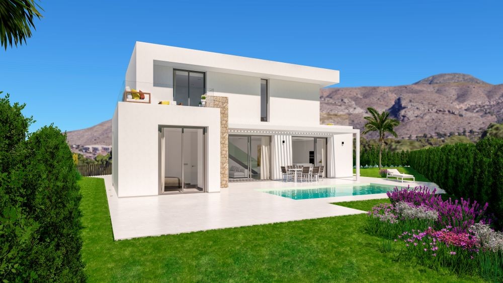 Luxurious New-Build Villas in Sierra Cortina, Finestrat Explore the elegant new development of independent villas in the exclusive neighborhood of Sierra Cortina, Finestrat. Nestled in a picturesque area close to Benidorm, these premium properties offer modern living spaces and top-notch amenities. With easy access to the Mediterranean coast, these villas are ideal for anyone seeking a blend of luxury, comfort, and convenience. Just 5 km from the vibrant city center of Benidorm, this development also places you within a short distance of major points of interest. Spacious and Modern Villas with 3 or 4 Bedrooms Each villa in this new development features 3 or 4 bedrooms and 3 luxurious bathrooms, creating ample space for family and guests alike. The heart of these homes is the open-plan living and dining area, connected to a sleek, integrated kitchen. This versatile space is perfect for family gatherings and entertaining, providing a cozy yet contemporary ambiance. Some units also include a basement area that can be customized into a gym, home cinema, or recreational area, offering endless possibilities for personalization. Advanced Home Automation and Energy-Efficient Design These villas are designed with the latest in smart home technology. Fully automated with a state-of-the-art home automation system, residents can control lighting, blinds, and air conditioning with ease. Safety is also a priority, with integrated flood and fire detection systems, a video intercom, and remote security features. To ensure energy efficiency, the villas make use of natural light, cross ventilation, wind protection, and water conservation features, reducing energy costs while maintaining a comfortable living environment. Private Outdoor Spaces with Pool and Landscaped Gardens Enjoy the Mediterranean climate with a private garden that serves as a personal oasis. Each villa features a private swimming pool, ideal for cooling off on warm days or hosting summer gatherings. The landscaped garden is adorned with natural grass and trees, supported by an automatic irrigation system, and has tasteful exterior lighting to create a relaxing atmosphere after sunset. Prime Location Near Benidorm and Key Attractions These villas in Sierra Cortina offer proximity to key destinations. The lively beaches of Benidorm are just 4 km away, and Alicante-Elche Airport can be reached in approximately 50 km. Golf enthusiasts will find several prestigious courses nearby, such as Villaitana Golf, just 3 km away. For shopping and dining, La Marina Shopping Center is within a 2 km drive, providing access to a variety of retail, dining, and entertainment options. Luxury Living in Sierra Cortina Reserve Your Dream Home Today Discover a blend of elegance, comfort, and advanced technology in these new-build villas at Sierra Cortina. Dont miss the chance to own a home in one of the most sought-after locations on the Costa Blanca.