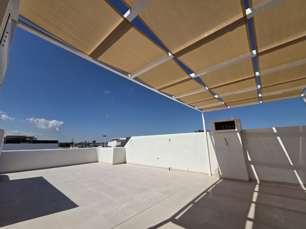 New Build Bungalows in San Pedro del Pinatar Modern Living by the Sea Exclusive Residential Complex with Modern Bungalows Discover this new residential complex of 8 modern bungalows in San Pedro del Pinatar, one of the most desirable locations on the Costa Cálida. These contemporary homes offer 3 bedrooms, 2 bathrooms, an open-plan kitchen with a spacious living area, built-in wardrobes, and a private terrace. You can choose between: Ground floor bungalows with a private garden and on-plot parking. Top floor bungalows with a private solarium, perfect for enjoying the Mediterranean climate. High-Quality Features in Every Home Each bungalow includes top-tier finishes and modern features for maximum comfort: Air conditioning unit included. Aerothermal system for energy-efficient hot water production. Fully fitted kitchen with BOSCH appliances. Fully equipped bathrooms with furniture, mirrors, shower screens, and electric underfloor heating. Electric shutters on all windows. LED lighting throughout the interior and exterior of the property. Additional features for top-floor bungalows: Aluminum pergola for shade and style. Outdoor summer kitchen, perfect for entertaining. Private parking space and storage room for bicycles. Community Amenities Residents of this exclusive complex will enjoy: A beautifully landscaped communal area. A community swimming pool to relax and refresh. Prime Location in San Pedro del Pinatar San Pedro del Pinatar is a privileged coastal town, located between the Mar Menor and the Mediterranean Sea. It is well known for its beaches, natural mud baths, and excellent nautical facilities, including marinas and yacht clubs. The area is a paradise for water sports enthusiasts and offers a relaxed Mediterranean lifestyle with all essential services nearby. San Pedro del Pinatar boasts an established year-round community, with access to sports facilities, an indoor swimming pool, and a vibrant social scene, thanks to the regions mild winter climate. The famous Lo Pagán area has grown significantly, offering a full range of amenities, shops, restaurants, and entertainment options. Distances to Key Points of Interest Dos Mares Shopping Center 5 minutes. Mar Menor Beaches 10 minutes. Murcia-Corvera Airport 30 minutes. Alicante Airport 1 hour. Invest in Quality & Lifestyle These modern bungalows offer an exceptional opportunity to own a home in one of the most sought-after areas of the Costa Cálida. Whether as a holiday retreat, investment, or permanent residence, this is your chance to embrace the Mediterranean lifestyle.
